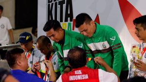Sontak sorak riuh pendukung Pebiliar Sumut kembali memenuhi arena pertandingan. Para pendukung pun berlarian untuk bersalaman dengan pasangan Pebiliar Sumut Jefry/Punguan.