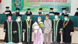 “Terlepas hal itu disebabkan faktor ekonomi, kesengajaan atau perilaku yang tidak bermoral, saya berharap kepada dokter yang baru dilantik jadilah dokter yang berakhlak dan santun,” ucap Rektor.