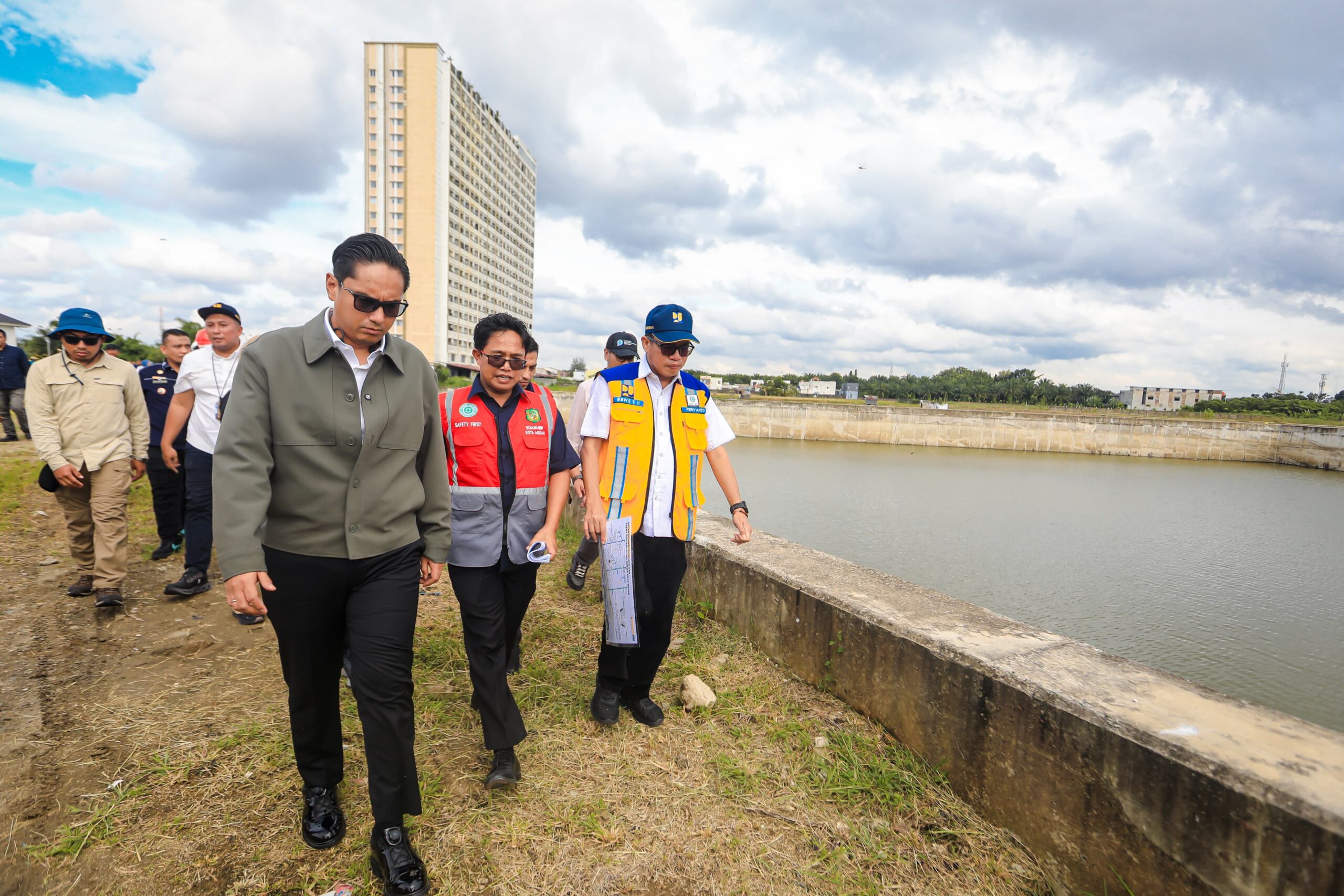 Medan – Wali Kota Medan Rico Tri Putra Bayu Waas meninjau kolam Detensi Selayang di Jalan Abdul Hakim, Tanjung Sari, Kecamatan Medan Selayang (18/11/2025). Peninjauan ini dilakukan terkait dengan rencana pengembangan kolam Detensi selayang yang didanai oleh World Bank.
