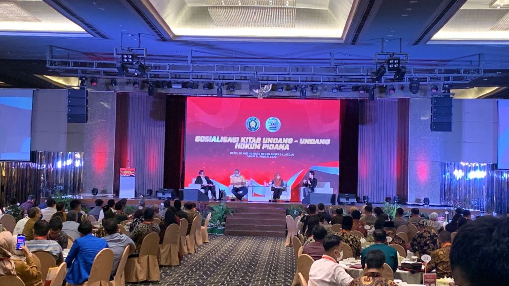 Sumutcyber.com, Medan – Masyarakat Hukum Pidana dan Kriminologi Indonesia (MAHUPIKI) Propinsi Sumatra Utara telah mengadakan acara sosialisasi Kitab Undang-Undang Hukum Pidana (KUHP) baru yang berlokasi di Hotel Grand Mercure Medan Angkasa, Sumatra Utara, pada Senin (9/1/2023).