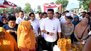 Deliserdang – Gubernur Sumatera Utara (Sumut) Muhammad Bobby Afif Nasution membuka dan meninjau pelaksanaan Pasar Murah. Tujuannya untuk memastikan Pasar Murah terlaksana dengan baik dan harganya komoditas pangan yang dijual, lebih murah dibanding harga pasar.
