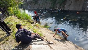 Dengan peralatan sederhana, petugas P3SU dan petugas kebersihan membersihkan sampah dan material lainnya yang ada di sungai tersebut.