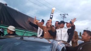 Toba – Pemerintah Kabupaten (Pemkab) Toba menerima Kirab Api PON XXI dari Panitia PON Aceh-Sumut di depan Labersa Hotel Balige, Senin (2/9/2024) sekitar pukul 18.20 WIB. Api PON tersebut diterima langsung oleh Bupati Toba Poltak Sitorus didampingi Sekda Augus Sitorus, para Asisten, Staf Ahli, serta sejumlah Pimpinan Perangkat Daerah. Selanjutnya, Api PON diarak keliling kota Balige.