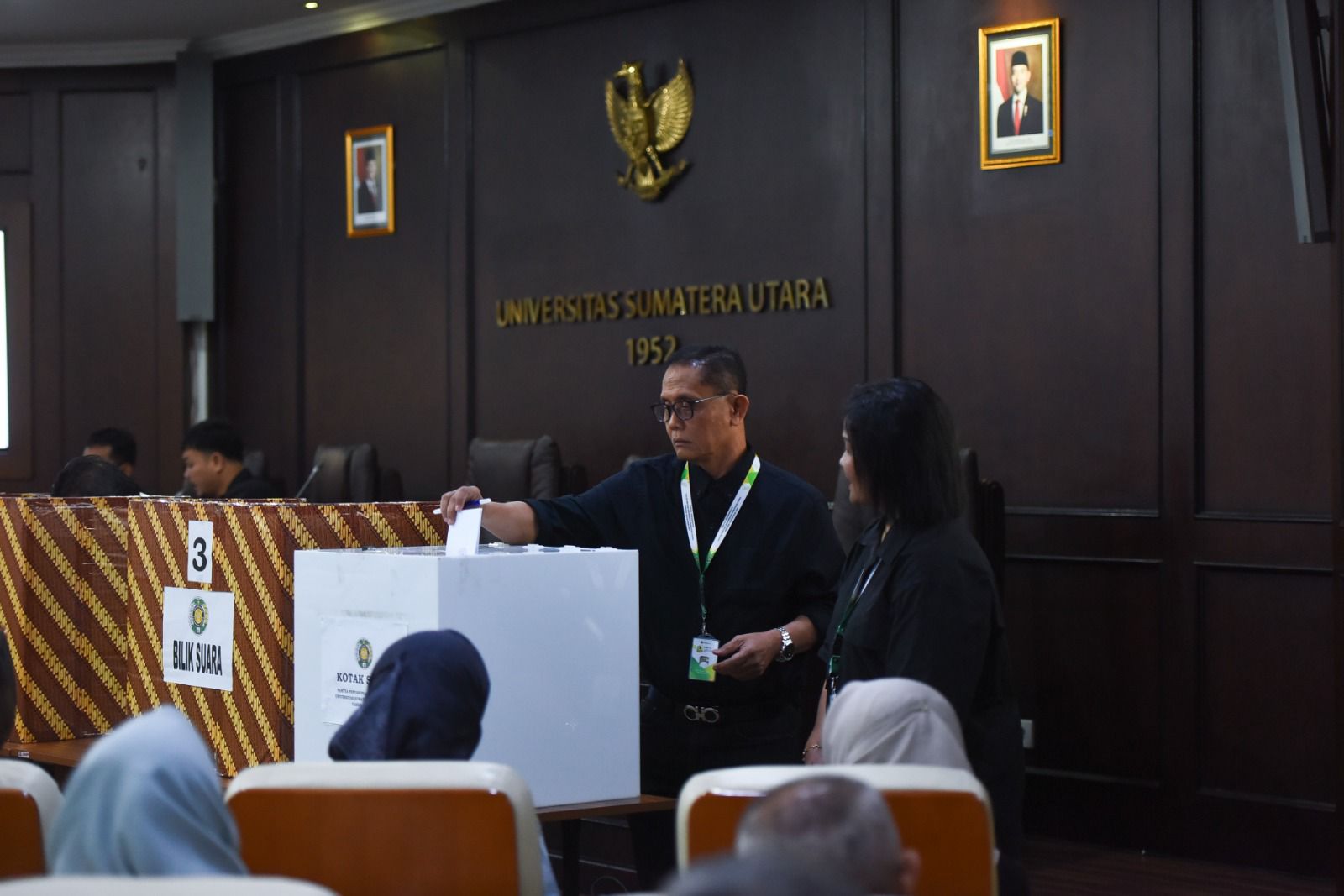 Medan – Senat Akademik (SA) Universitas Sumatera Utara (USU) baru saja melakukan pemilihan calon rektor di Ruang Senat Akademik, Biro Rektor USU, Kamis (25/9/2025) untuk menentukan tiga besar Calon Rektor USU dari delapan calon yang lolos penjaringan untuk audisi. Setelah melakukan voting (one man one vote), sebanyak 112 anggota senat melaksanakan pemilihan yang demokratis, jujur dan adil.