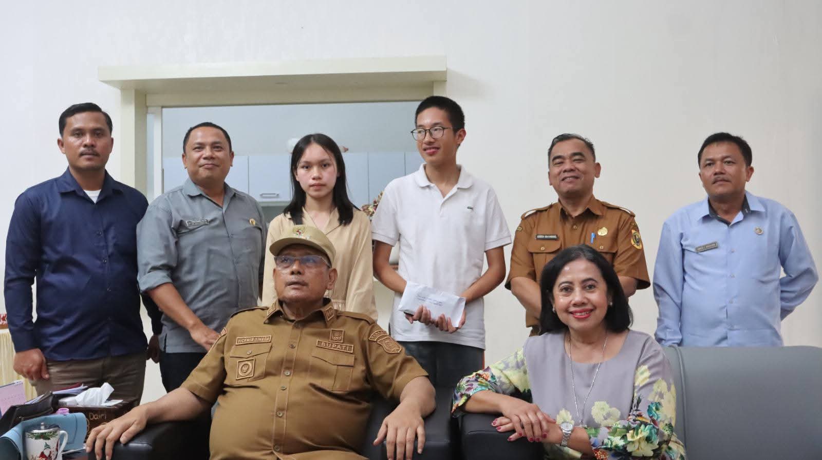 Menjelang keberangkatan ke Bali, dua dari tiga siswa bersama Kepala SMAN 1 Sidikalang, Ronal Pasaribu, berkesempatan bertemu dengan Bupati Dairi, Vickner Sinaga, di Pendopo Bupati, Selasa (7/4/2026).