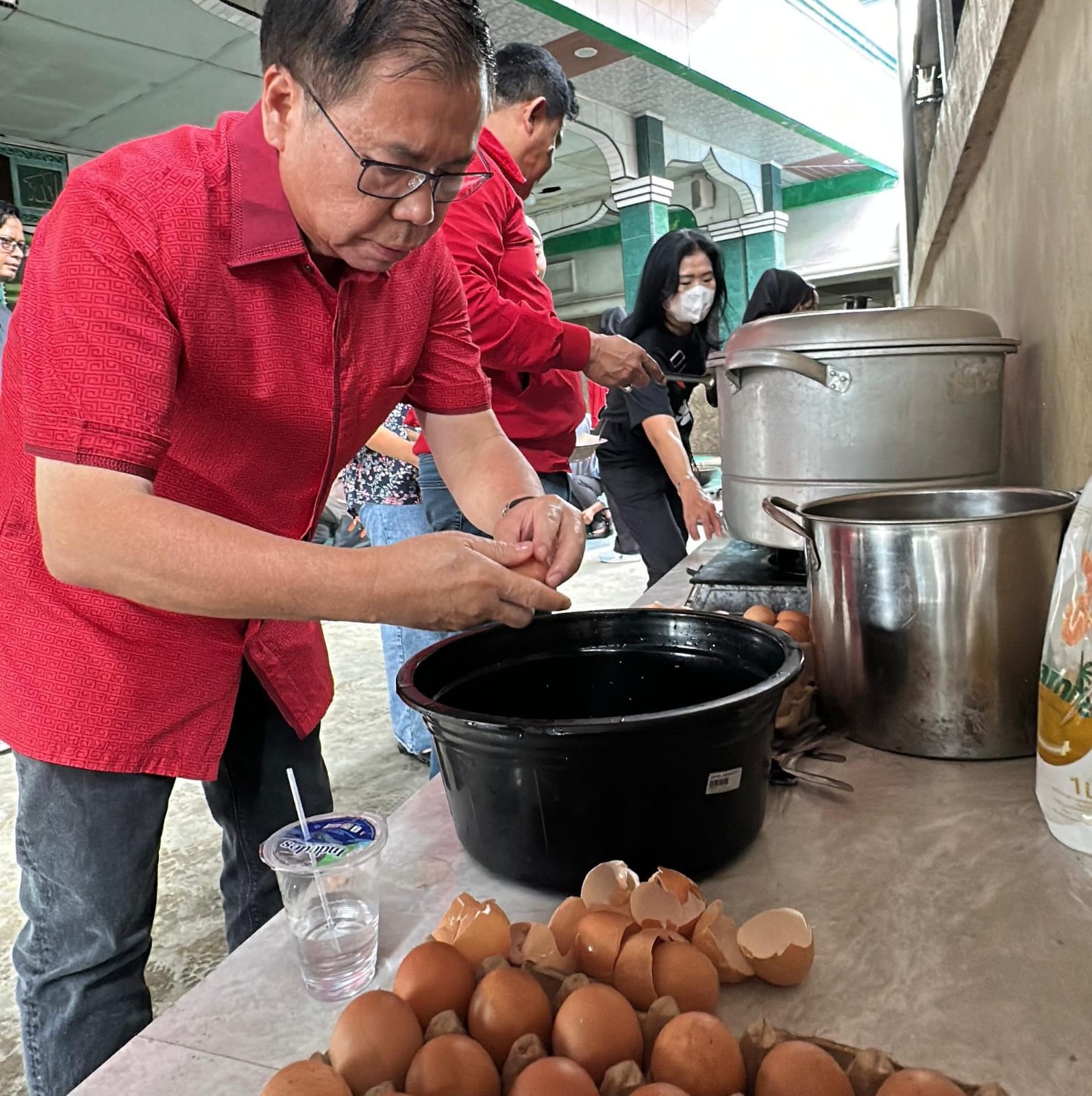 Menariknya, ketika singgah di dapur umum titik pertama, Jalan Besar Lubuk Pakam, Lingkungan 1, Paluh Kemiri, Sofyan Tan langsung turun mengambil kuali dan sodet, lalu satu persatu telur dipecahkan, diaduk rata dan dituangkan ke penggorengan untuk memasak telur orak-arik dan mie. Tak terasa sudah 12 papan telur dimasaknya, 2 jam lebih Sofyan Tan berdiri di depan kompor tanpa henti berduet dengan Wakil Ketua DPRD Deli Serdang dari Fraksi PDI Perjuangan Agustiawan Saragih.