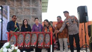 Sebagai tanda dimulainya kegiatan, Wabup Audi Murphy Sitorus didampingi Staf Ahli PKK Toba, Ny. Riama Audi Murphy Sitorus, serta perwakilan Forkopimda, memukul gondang sebagai simbol pembukaan resmi Toba Creative Festival 2025. (SC-JT)