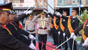 Acara penyambutan diawali dengan prosesi Pedang Pora untuk menyambut kedatangan AKBP Otniel. Setelah memasuki halaman Mapolres, ia bersama AKBP Faisal langsung memimpin apel Farewell Parade di hadapan seluruh personel.