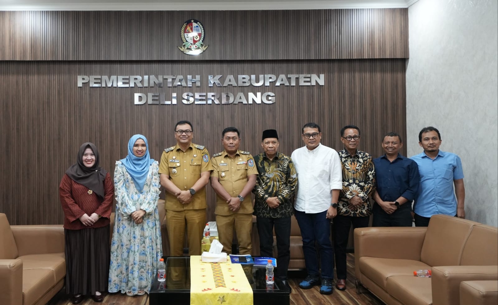 Deliserdang – Rektor Universitas Muhammadiyah Sumatera Utara (UMSU), Prof. Dr. Agussani, MAP, memaparkan progres pembangunan kampus terpadu UMSU saat melakukan audiensi dengan Bupati Deliserdang, dr. H. Asri Ludin Tambunan, di Kantor Bupati, Lubuk Pakam, Selasa (7/4/2026).