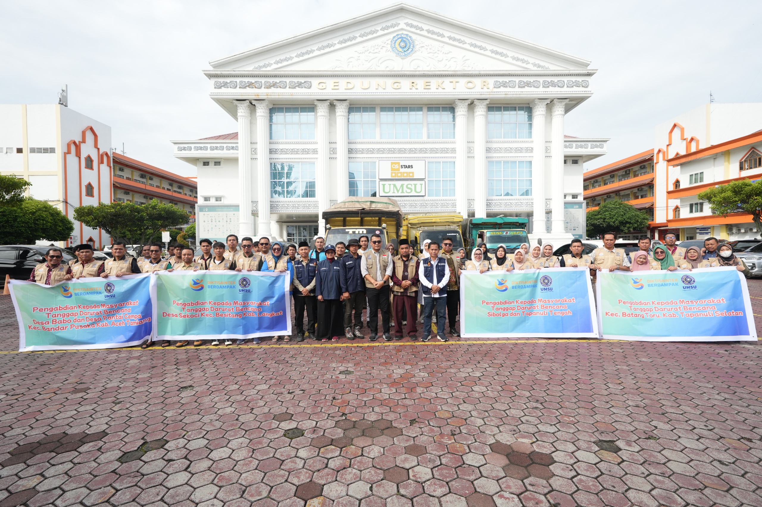 Medan – Universitas Muhammadiyah Sumatera Utara (UMSU) melepas empat tim Pengabdian kepada Masyarakat (PKM) untuk membantu penanggulangan bencana di sejumlah wilayah terdampak di Sumatera Utara dan Aceh, Sabtu (13/12/2025).