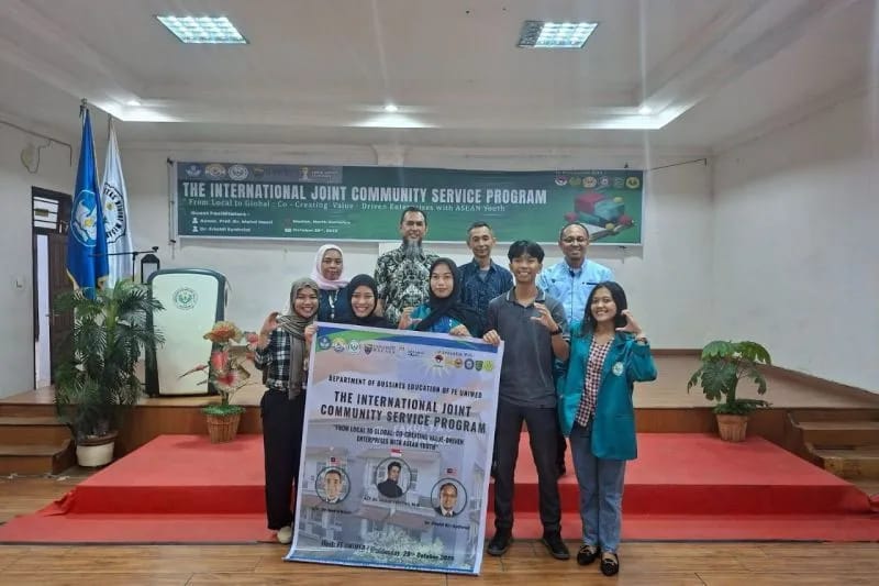 Medan – Fakultas Ekonomi Universitas Negeri Medan (Unimed) berkolaborasi dengan sejumlah institusi akademik dan organisasi pengusaha muda dari Indonesia dan Malaysia menggelar kegiatan Pengabdian Kepada Masyarakat (PKM) internasional bertajuk “From Local to Global: Co-Creating Value-Driven Enterprises with ASEAN Youth”, pada Rabu, 29 Oktober 2025, di Aula Fakultas Ekonomi Unimed.