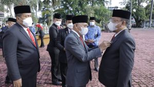 Sumutcyber.com, Kisaran – Upacara penurunan Bendera Merah Putih di Pemerintah Kab. Asahan dalam rangka HUT ke-76 Kemerdekaan RI diwarnai dengan penyerahan penghargaan dan hadiah oleh Bupati Asahan H. Surya, Selasa (17/8/2021).