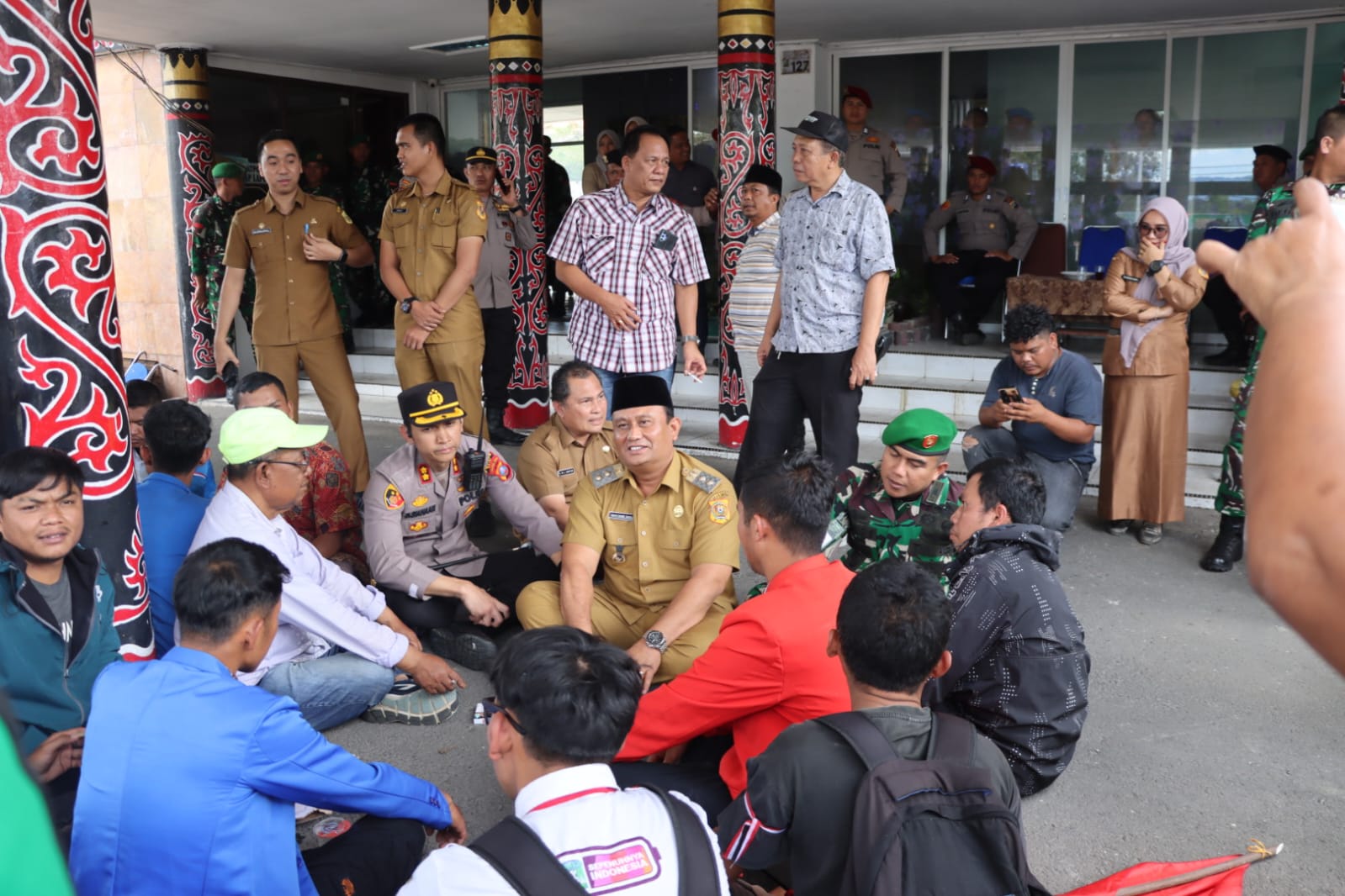 Wakil Bupati hadir bersama Sekretaris Daerah Charles Bantjin, Kapolres Dairi, dan Dandim 0206/Dairi untuk menenangkan massa dan mendengarkan aspirasi mereka.