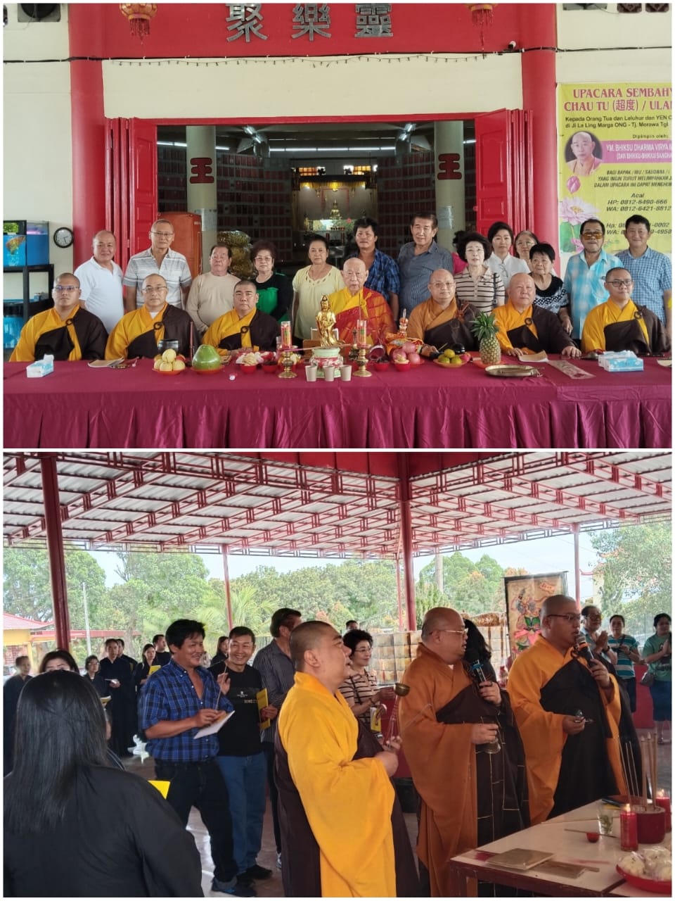 YM Bhiksu Dharma Virya Mahasthavira bersama Bhikku-bhikku membacakan doa-doa kepada para leluhur diikuti oleh ratusan warga keturunan Tionghoa dan pengurus Yayasan Sosial Marga Raja (Ong) yakni Ong Seng Chiong (Ketua), Ong Cai ( A Cai), Ong Kasan, Ong Ming Kui, dan Ong Ka Eng.