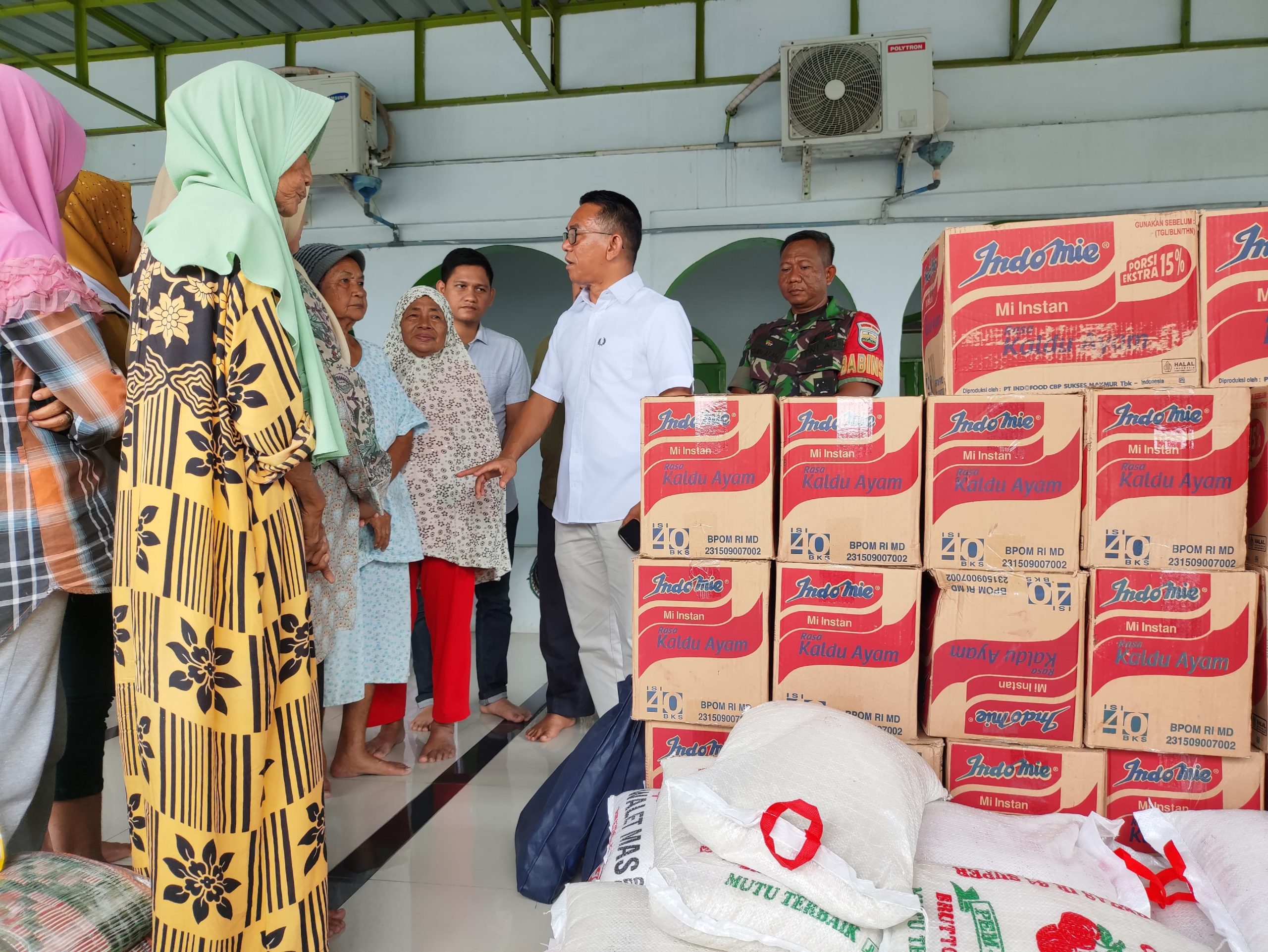 Penyaluran bantuan ini diserahkan Wakil Wali Kota Medan H Zakiyuddin Harahap di dapur umum yang dibangun swadaya warga di Masjid Al Hijrah, lingkungan 11. Saat menyalurkan bantuan kondisi jalan di wilayah tersebut masih tergenang air setinggi mata kaki.